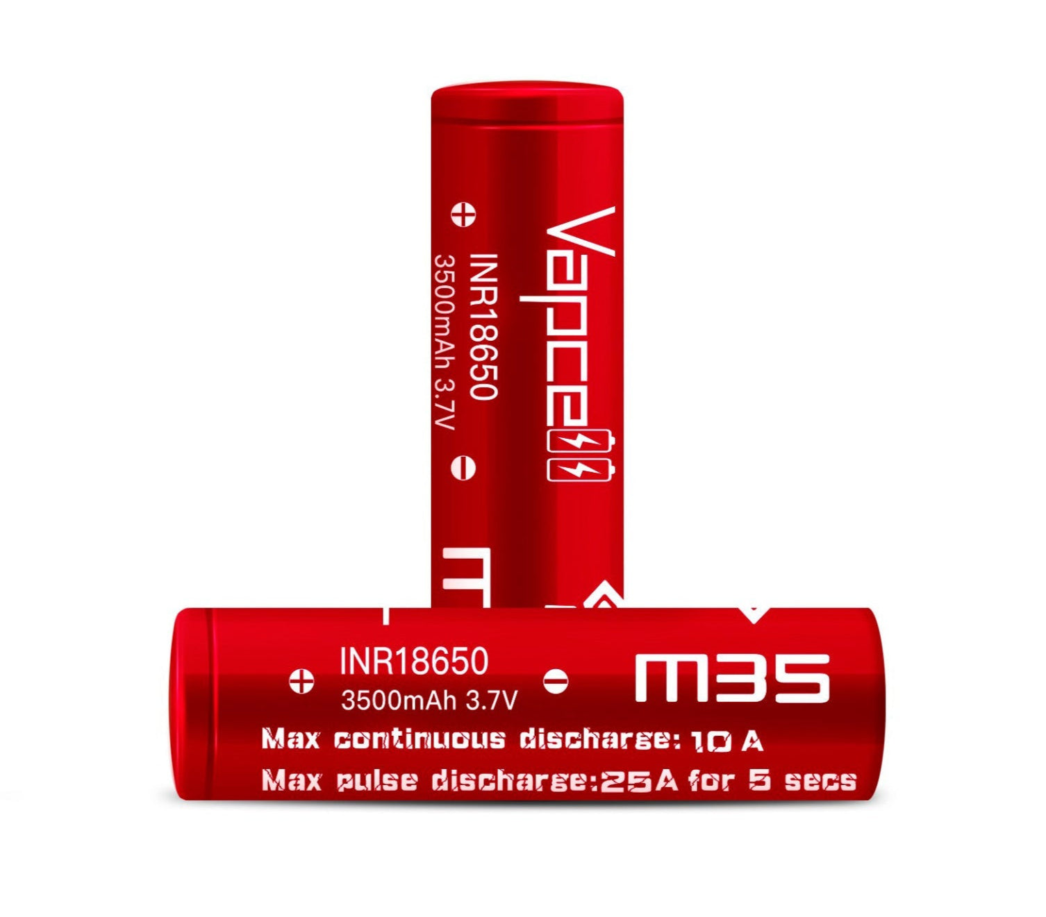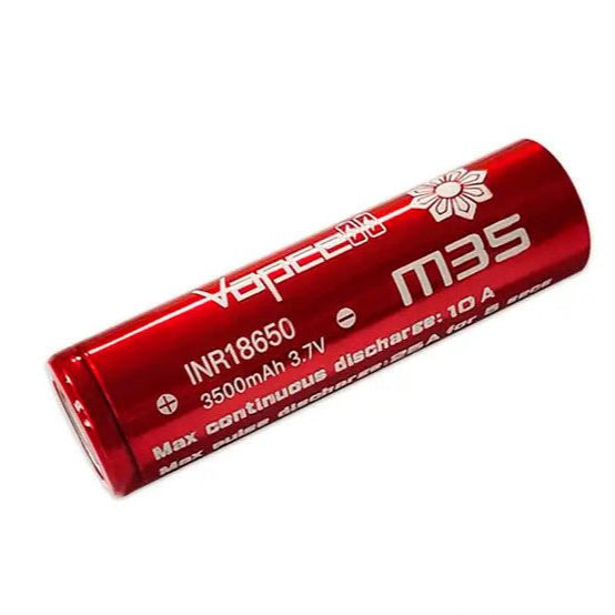 The Vapcell M35 18650 Flat Top Battery is a high-performance lithium-ion rechargeable power cell, designed for long-lasting energy delivery and reliable performance. With a 3500mAh capacity and a continuous discharge rate of 10, AMax Pulse Discharge: 25A (5 Seconds), this battery is an excellent choice for moderate-to-high-drain applications, offering stable output and extended runtime.
